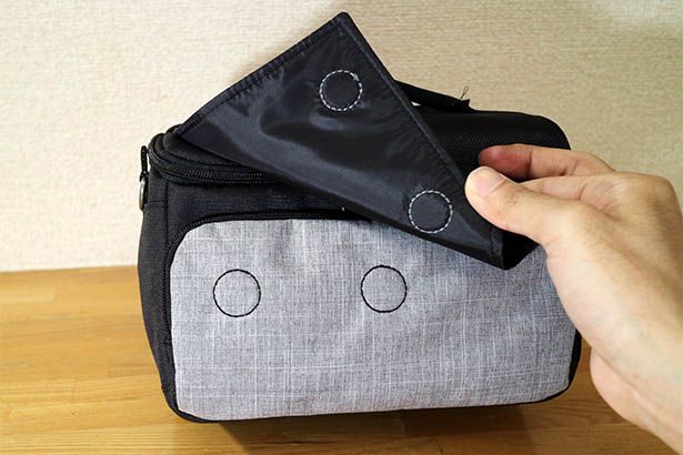 レンズの上はまだ余裕があるので、ひとまず外付けEVFをいれ、カメラのストラップを納めて蓋を閉めました。うーんスッキリ!