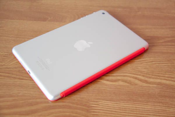 それでは、iPad miniのホワイトモデルと、ブラックモデルそれぞれに、赤のスマートカバーを付けて比べてみましょう。